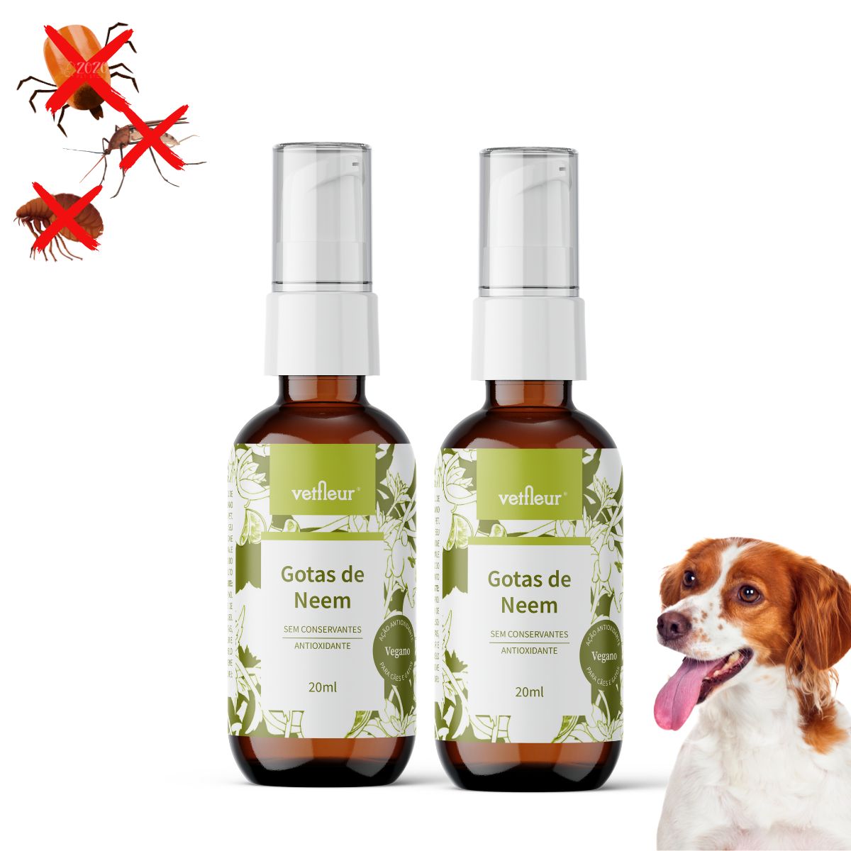 02 Repelente para Cães Gotas de Neem Bioprotetor Vetfleur 20ml