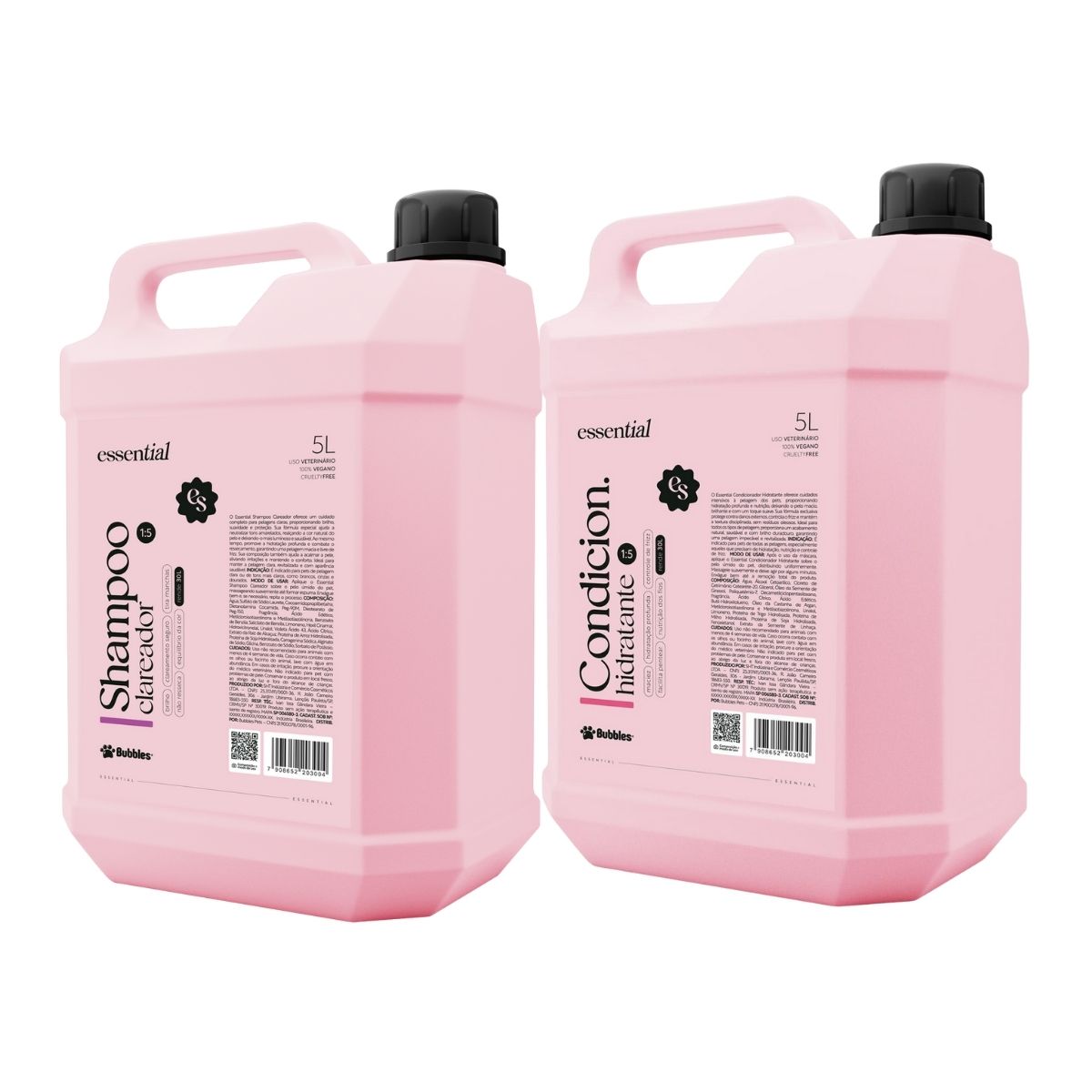 01 Shampoo Pet Clareador Essential 5L 1:5 Cães e Gatos Banho e Tosa Bubbles