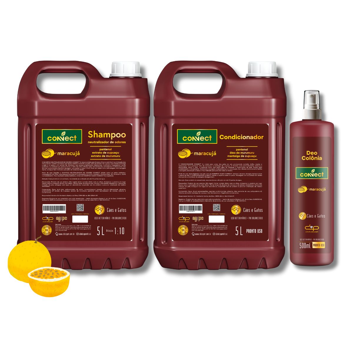 Kit Shampoo Neutralizador Condicionador PU e Perfume Connect Dolce Pet Maracujá 5L