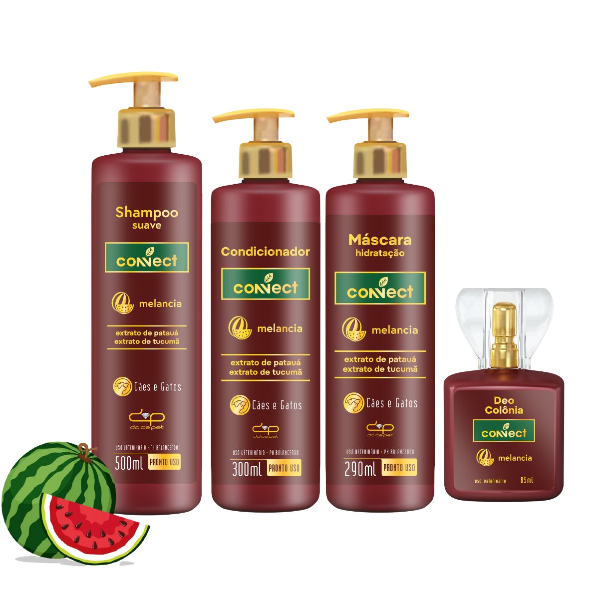 Kit Shampoo Suave Condicionador Máscara e Perfume Connect Dolce Pet Cães Gatos Melancia