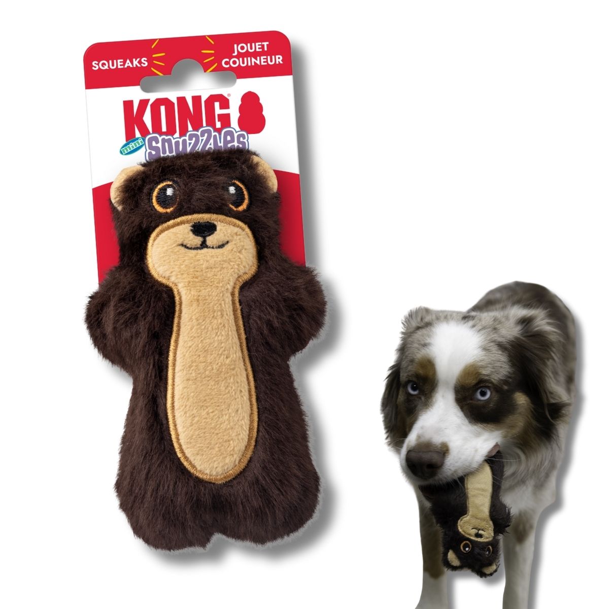 Os KONG Snuzzles Minis são perfeitos para cães pequenos que adoram grandes barulhos! Este pequeno brinquedo é perfeito para morder, carregar e para momentos de aconchego. O apito no corpo inteiro cria uma sensação densa ao paladar que estimula a abocanhar. Seu formato plano e a parte exterior de pelúcia aveludada tornam esses minis personagens brinquedos fáceis de agarrar e perfeitos para brincadeiras ao ar livre.