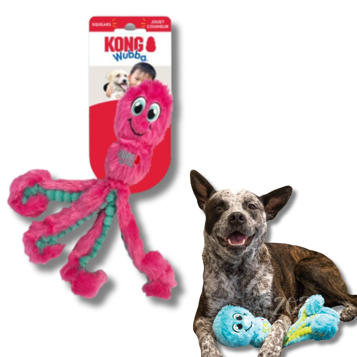 KONG Wubba Octopus é um brinquedo desenvolvido para cães de mordida leve e não destruidores.