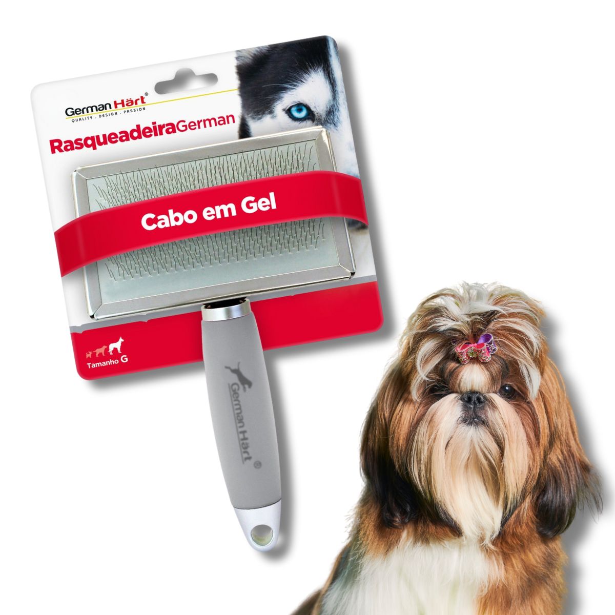 Mantenha o pelo do seu pet sempre saudável, bonito e livre de emaranhados com a Rasqueadeira Com Cabo de Gel da Germanhart! Indicada para cães e gatos de todas as raças, ela é perfeita para os cuidados diários e garante resultados de pet shop sem sair de casa.