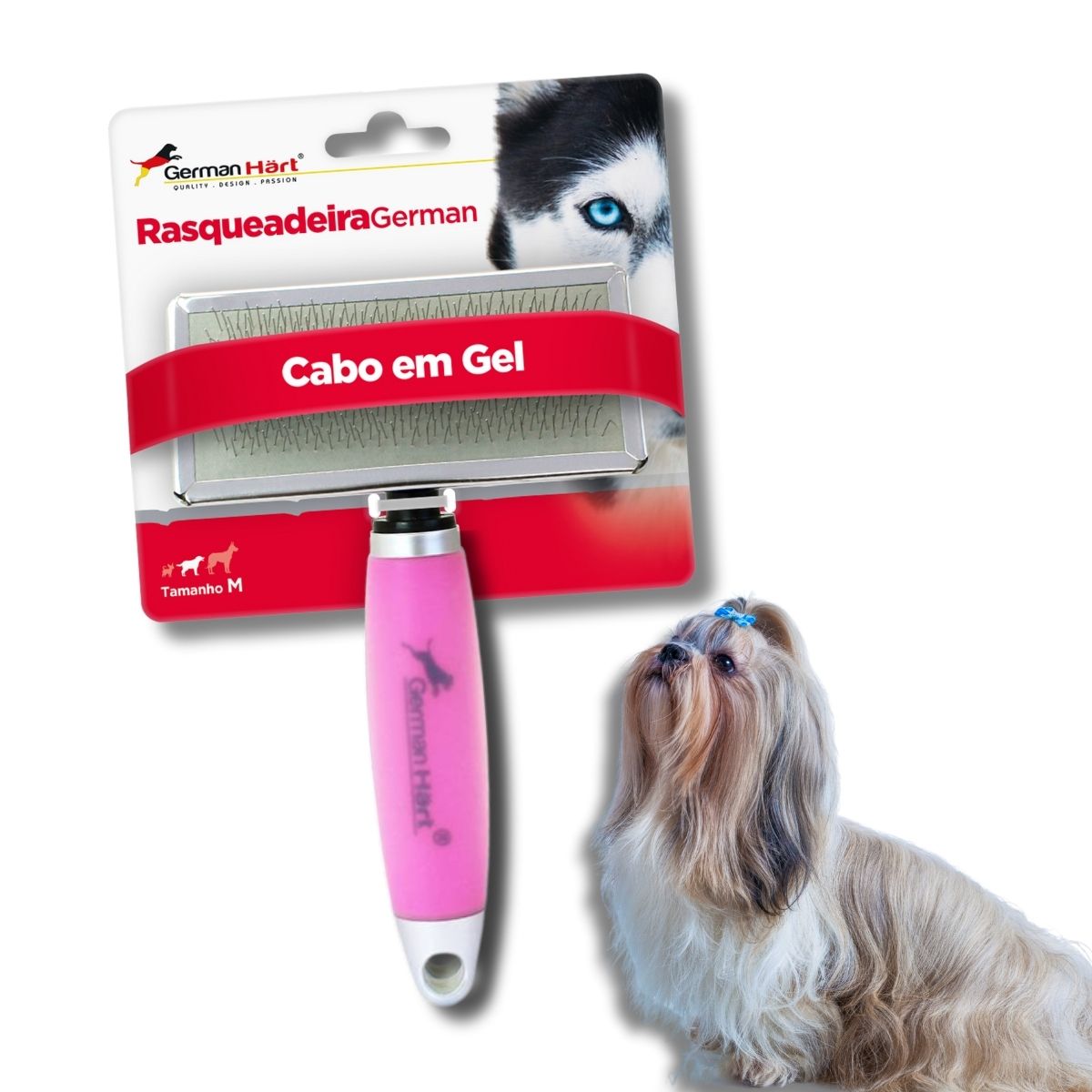 Mantenha o pelo do seu pet sempre saudável, bonito e livre de emaranhados com a Rasqueadeira Com Cabo de Gel da Germanhart! Indicada para cães e gatos de todas as raças, ela é perfeita para os cuidados diários e garante resultados de pet shop sem sair de casa.